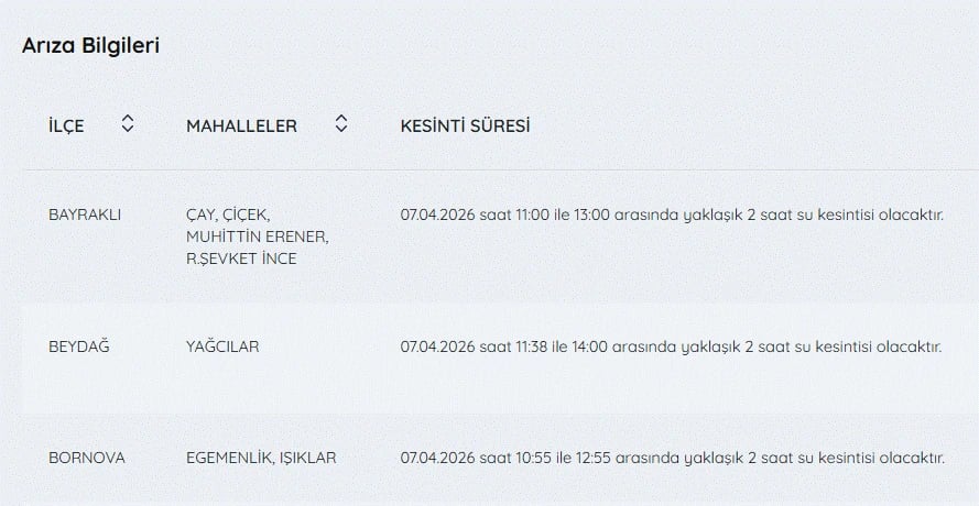 İzmir su kesintileri listesi 7 Nisan günü ilde halihazırda olan ve yeni kesintilere ilişkin detaylı bilgi edinmek isteyenler yoğun olarak 7 Nisan İzmir'de sular ne zaman gelecek, kesinti var mı, nerelerde, ne zaman düzelir? soruları üzerinden araştırılıyor.