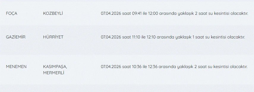BUGÜN İZMİR'DE SU KESİNTİSİ VAR MI?