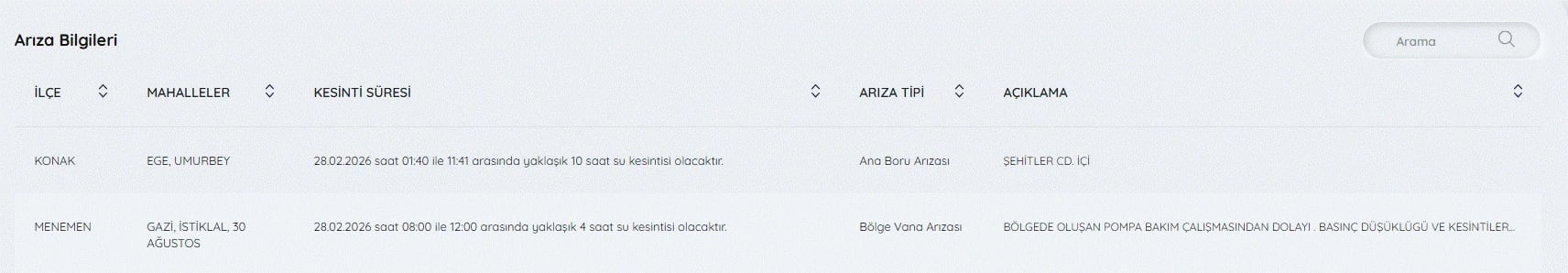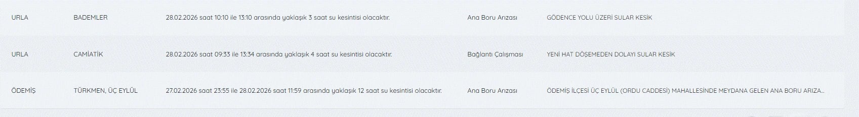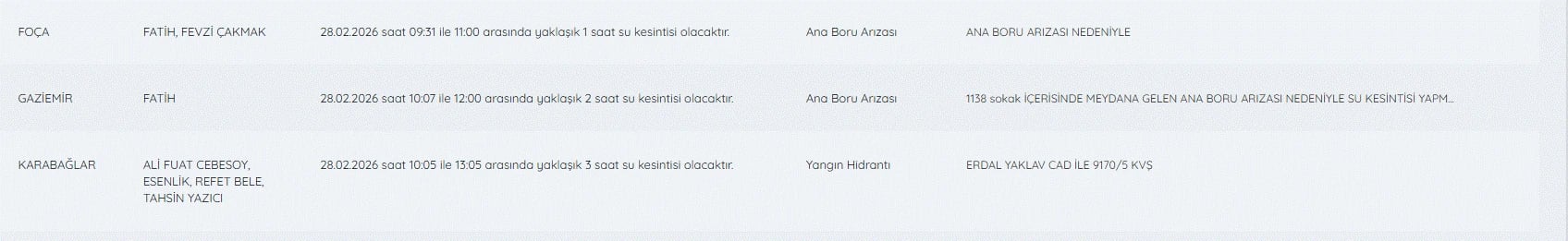 28 Şubat İzmir su kesintileri listesi ve tüm detaylar şöyle;