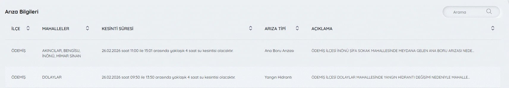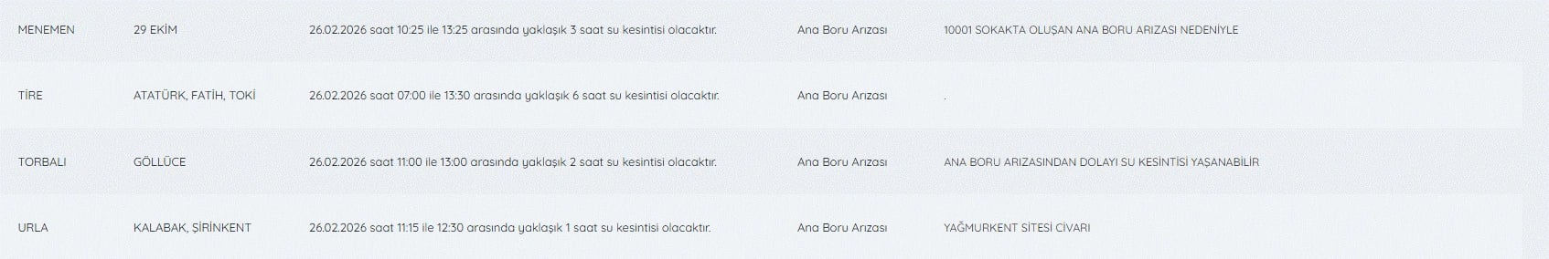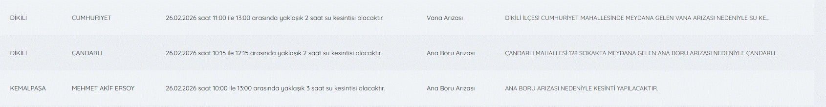 26 Şubat İzmir su kesintileri listesi ve tüm detaylar şöyle;
