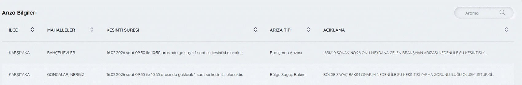 İzmir su kesintileri listesi, günlük olarak İZSU tarafından kamuoyuyla paylaşılıyor. 16 Şubat kesintilerini, arıza nedeni ve tamir edilme saatini öğrenmek isteyenler detayları 16 Şubat İzmir'de su kesintisi var mı, nerelerde, ne zaman düzelecek? seklinde araştırıyor.