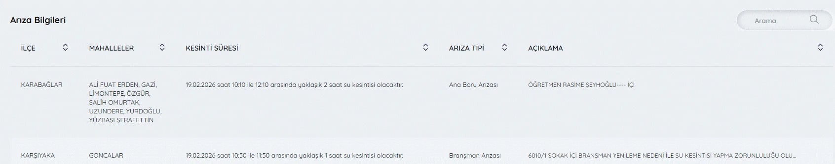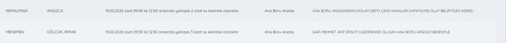 19 Şubat İzmir su kesintileri listesi ve tüm detaylar şöyle;