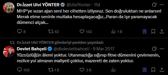 - Olay, İzzet Ulvi Yönter’in Devlet Bahçeli’nin 2017 tarihli "fitne dümencileri" hakkındaki tweetini yeniden paylaşmasıyla başladı.