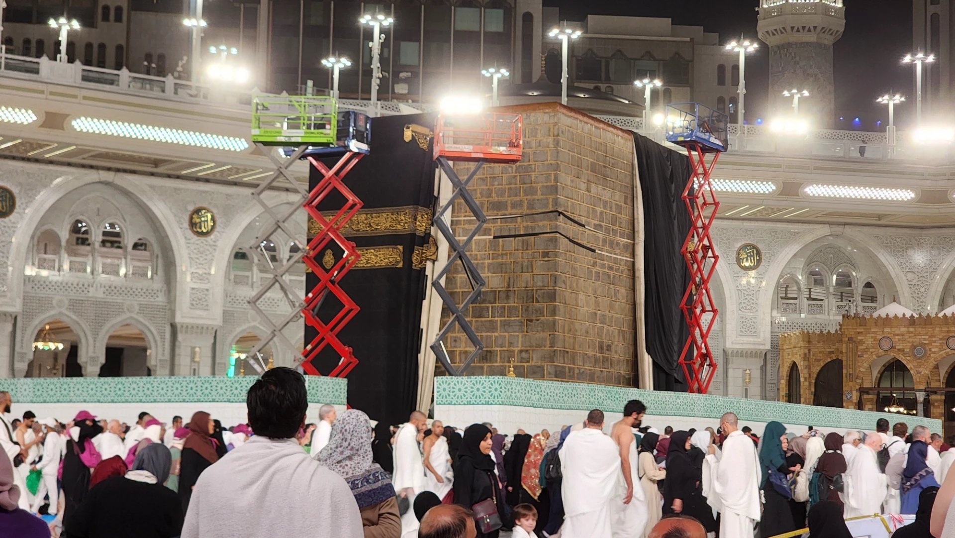 Mekke’de Kabe-i Muazzama’nın dış duvarları, örtünün kaldırılmasının ardından bakıma alınırken, çalışmalar sırasında bazı bölümlere ziyaretçi kabul edilmedi.