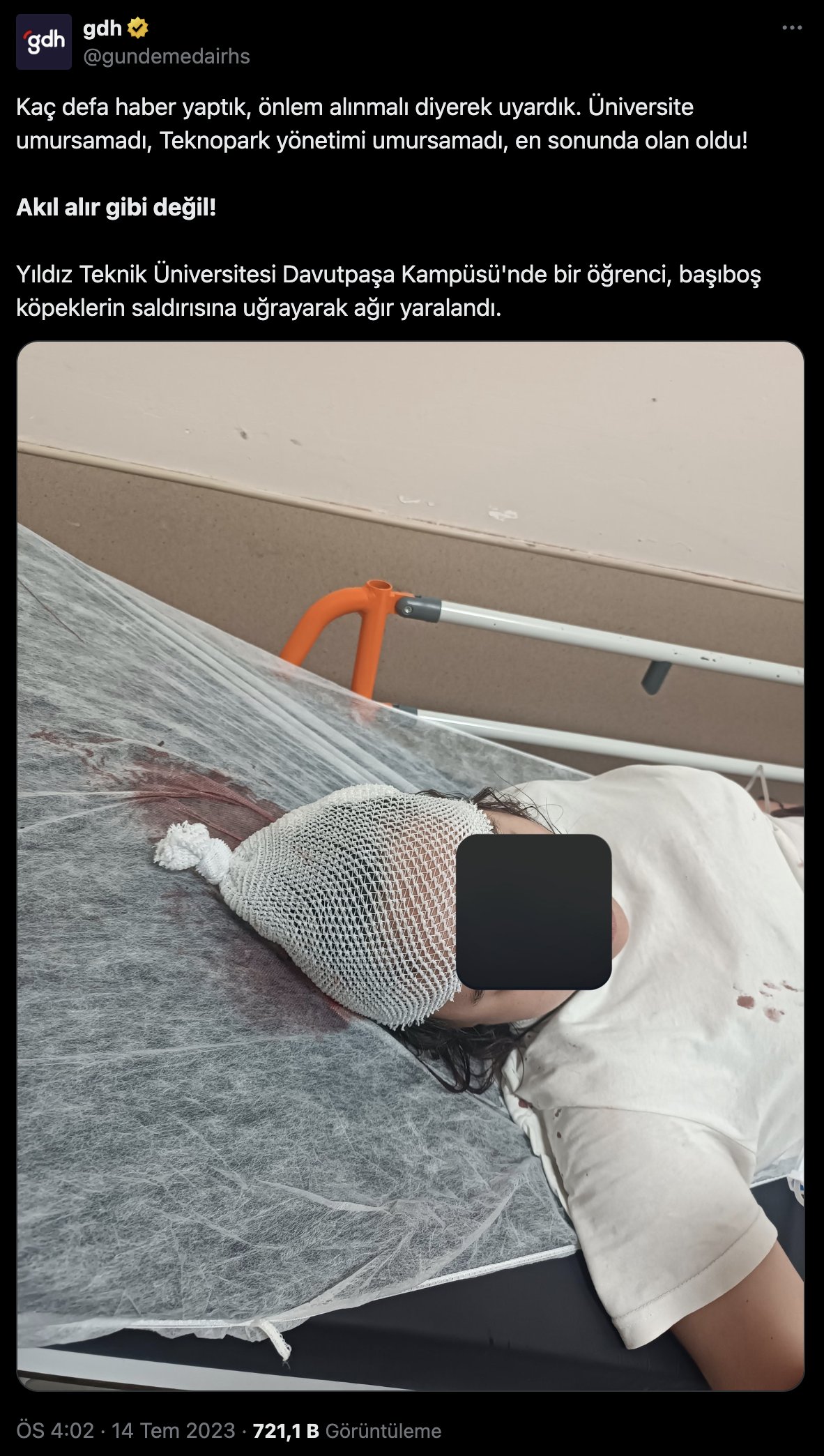 - Gözde Aydın isimli öğrenci, kampüs içinde 20’ye yakın köpeğin saldırısına uğradı.