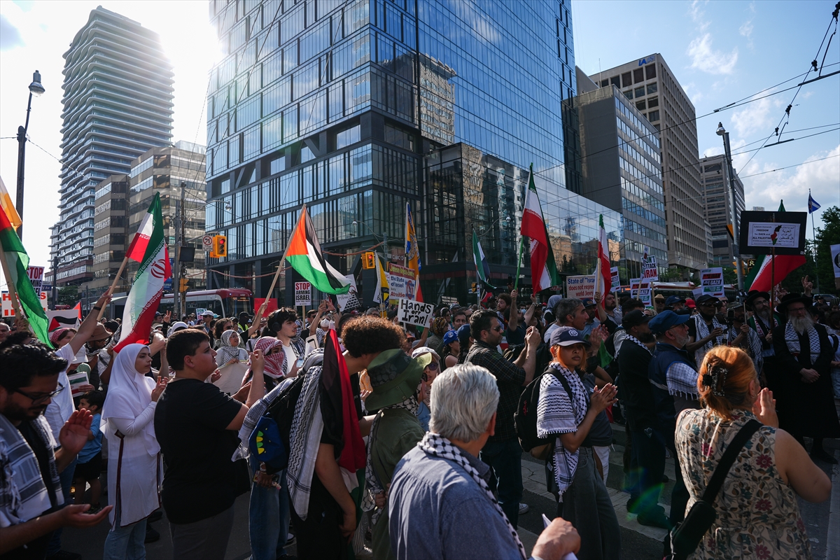 Kanadalı insan hakları aktivistleri, ABD’nin İsrail’e destek olmak için İran’ın nükleer tesislerine düzenlediği saldırıyı “İran’dan elini çek” sloganıyla protesto etti.