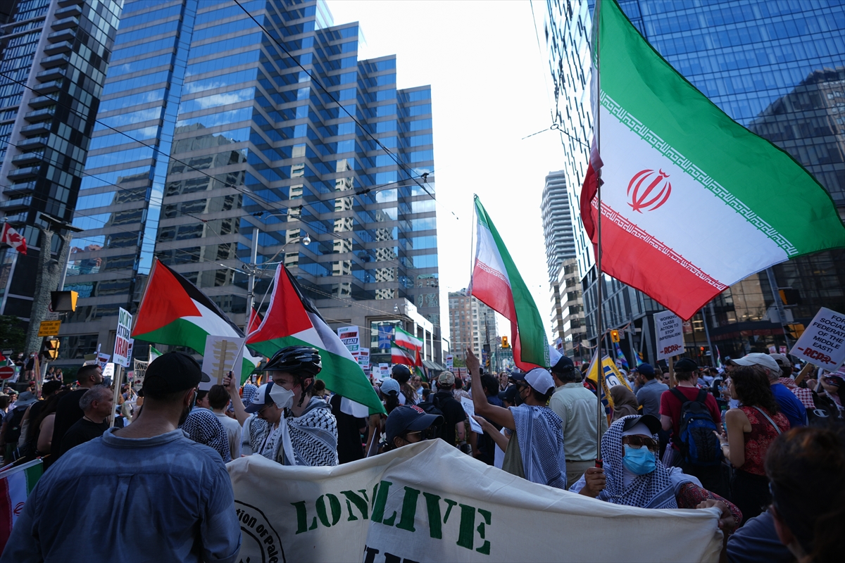 Kanada'nın Toronto kentinde toplanan insan hakları aktivistleri, İran ve Gazze'ye destek gösterisi düzenledi.