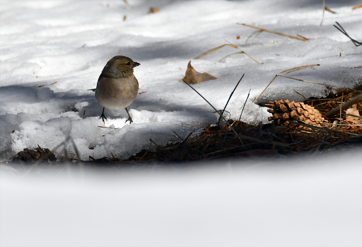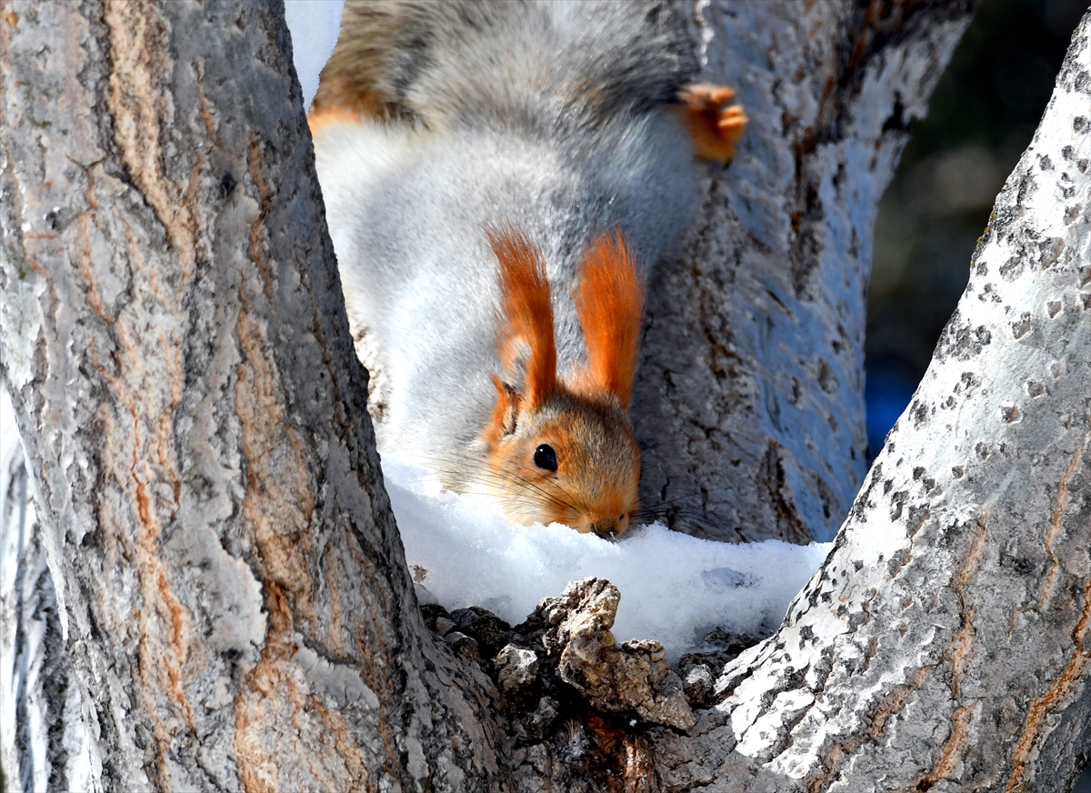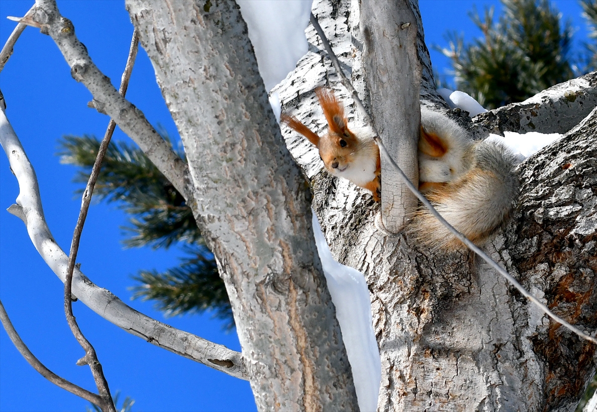 Kızıl sincaplar, sarıçam kozalakları ve kavak ağaçlarının kabuklarıyla beslendi. Ağaçkakanlar ağaçlarda çalışırken, kuşlar da karlı zeminde yiyecek aradı.
