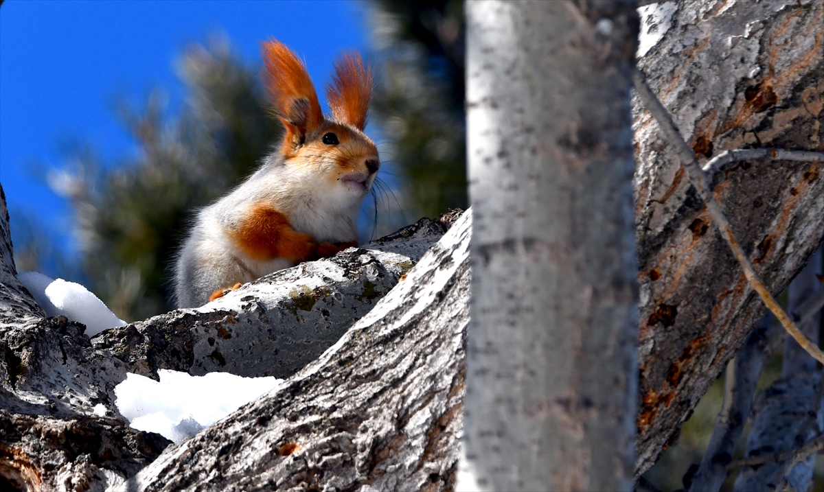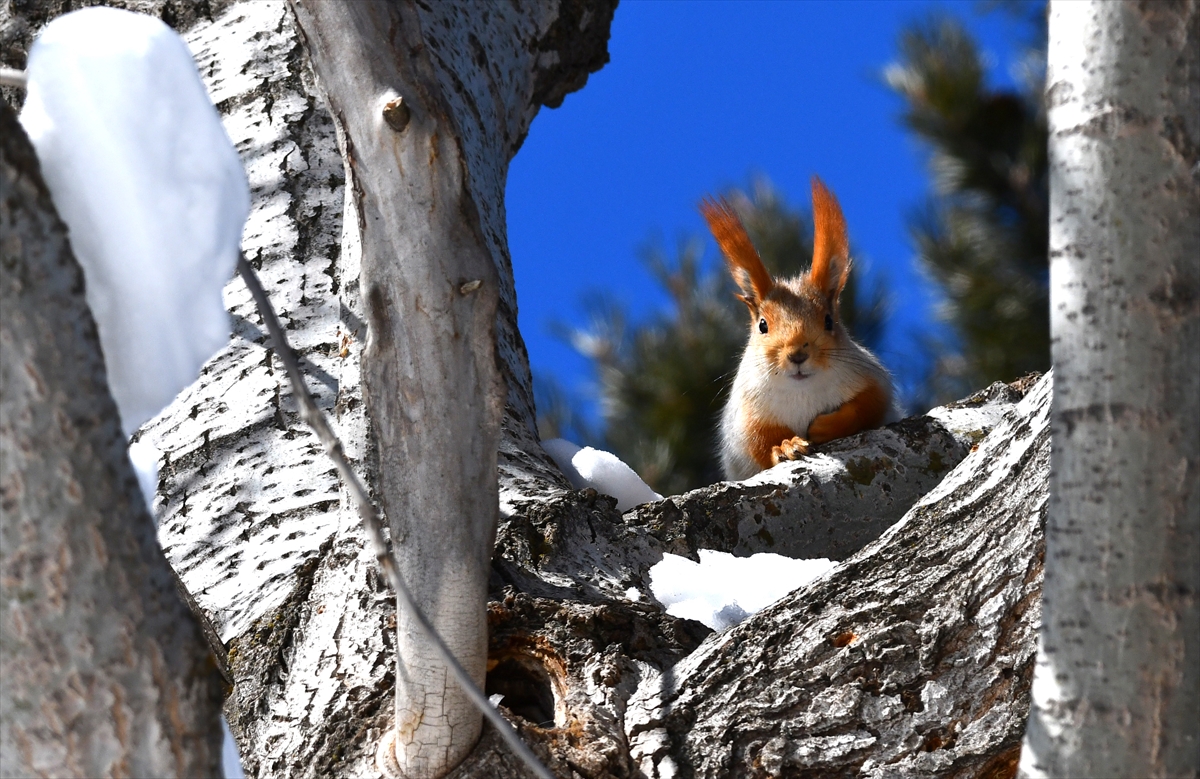 İlçenin Çamaşırdere ormanlık alanındaki ağaçlarda ortaya çıkan kızıl sincaplar, ağaçkakanlar ve yaban kuşları görüntülendi.