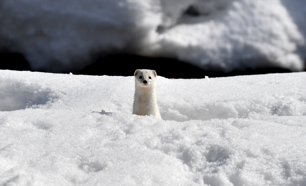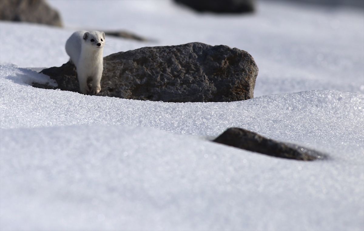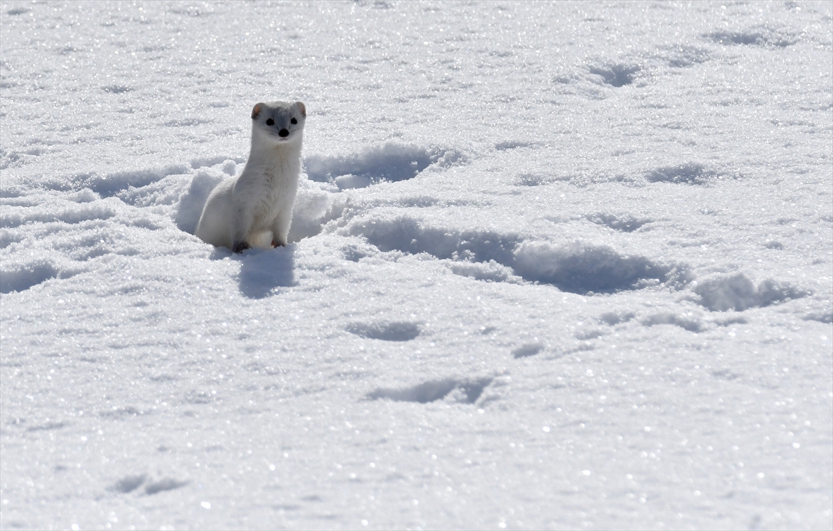 Yaz aylarında kahverengi olan tüylerinin kışın beyaza dönüşmesiyle bambaşka bir güzelliğe sahip olan gelincikler, doğada nadir rastlanan ve nesli koruma altında bulunan hayvanlar arasında yer alıyor.