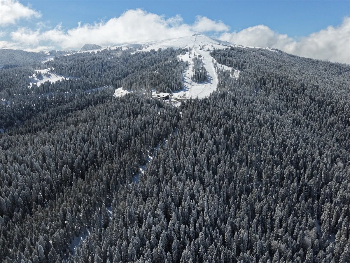 Batı Karadeniz'in en yüksek noktası olan Ilgaz Dağı ile zengin biyoçeşitliliğe sahip Yaralıgöz Dağı kar yağışıyla birlikte tamamen beyaza büründü.