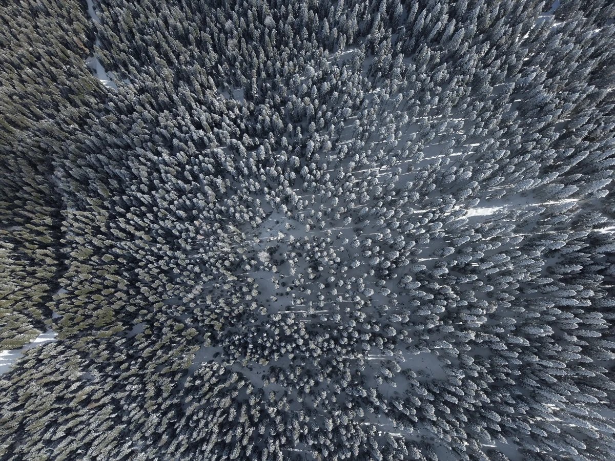 Ilgaz ve Yaralıgöz dağlarında kar yağışının hemen ardından ortaya çıkan bu estetik doğa harikası, havalanan dron kameraları tarafından tüm detaylarıyla havadan kayıt altına alındı.