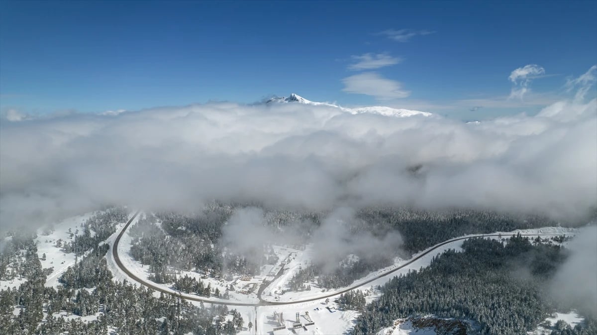 Gökyüzünün berrak maviliğiyle bütünleşen bembeyaz zirveler, bölgeden geçen yolculara ve doğa tutkunlarına unutulmaz manzaralar oluşturdu.
