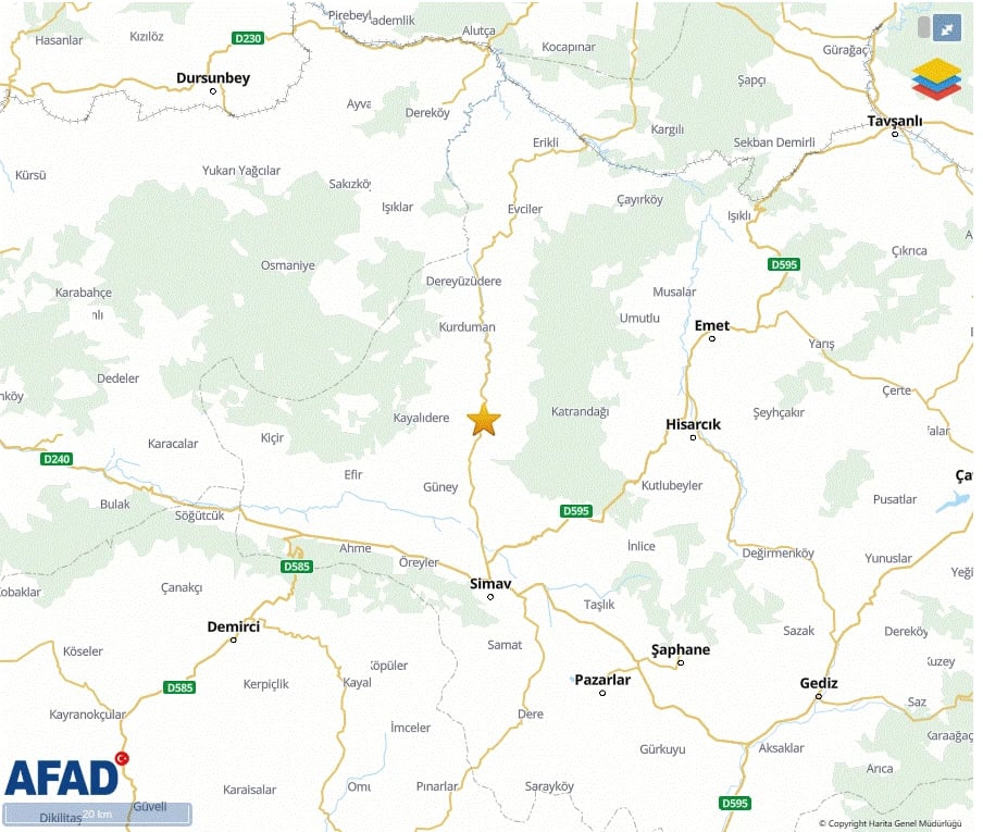 İşte AFAD ve Kandilli Rasathanesi verileriyle son dakika Kütahya deprem bilgileri;