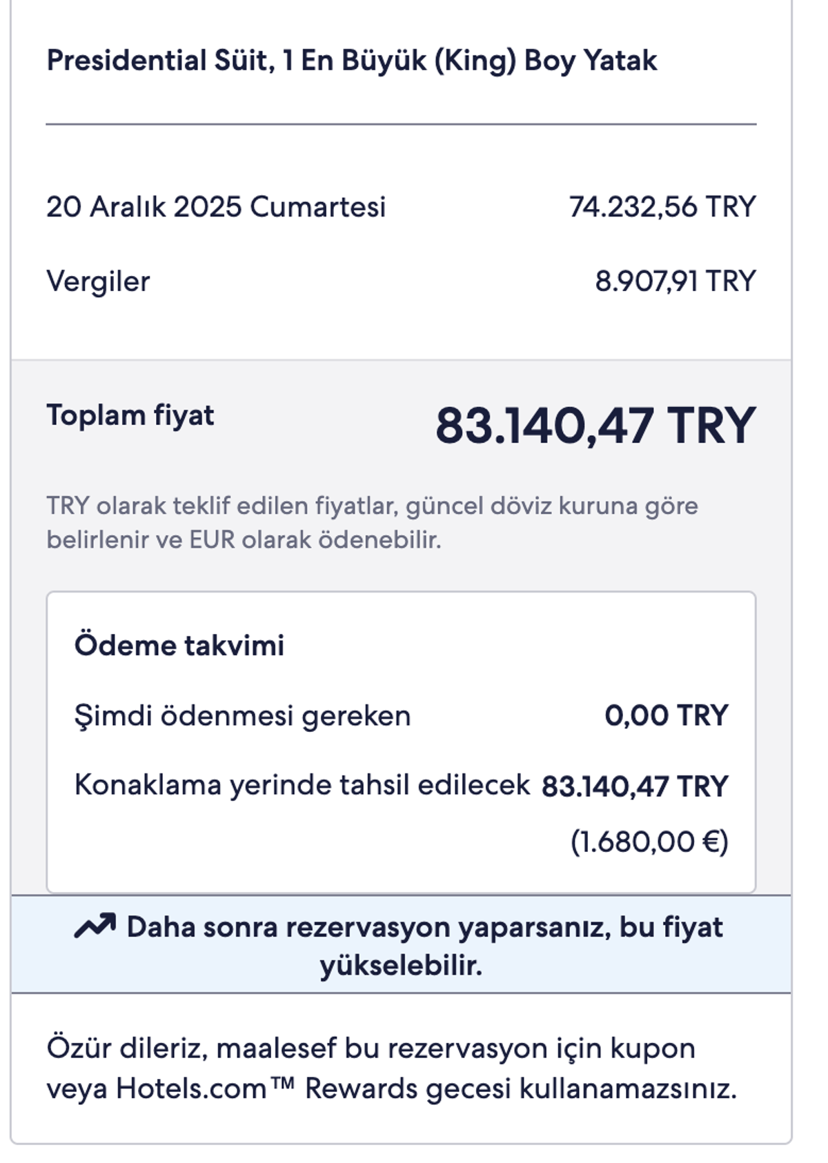 Bu süre zarfında odanın "satışa kapatıldığı" ve sadece vekile tahsis edildiği belirtilirken, otelin en lüks odasının kısa süreliğine ve ücretsiz olarak kullanıma açılması, içeride gerçekleşen görüşmelerin niteliğini tartışmaya açtı.