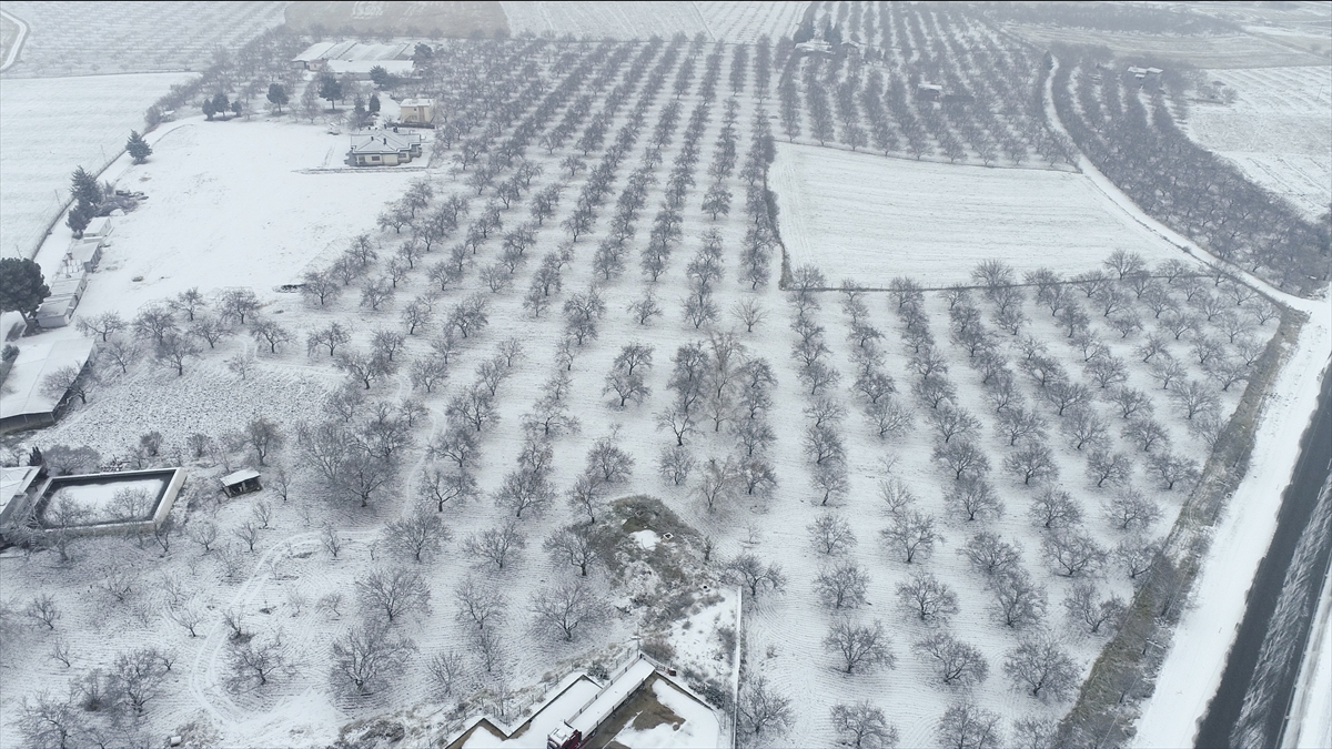 Kenti etkisi altına alan kar yağışı, birçok bölgede etkisini sürdürüyor. "Dünya kayısı başkenti" olarak anılan Malatya'da, kış aylarının gelmesiyle yağan karla birlikte kayısı ağaçları beyaza büründü.