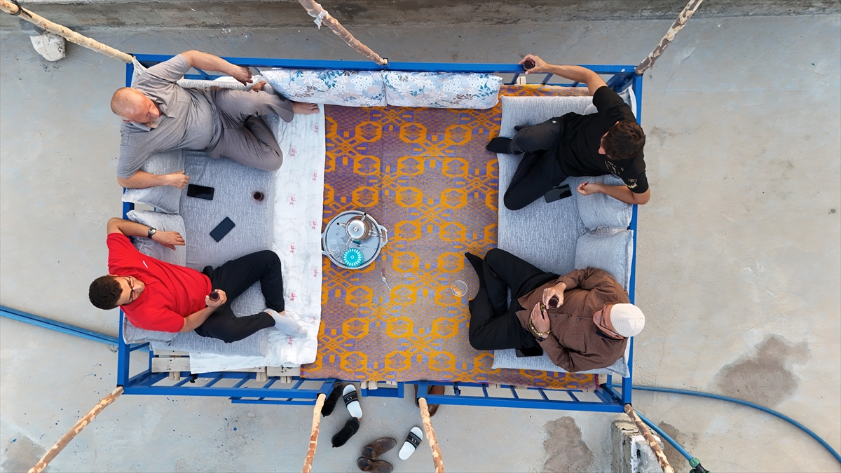 Mardin ve Batman'da etkili olan sıcak havalar nedeniyle vatandaşlar, serinlemek için evlerinin damlarına kurdukları tahtlarda uyumayı tercih ediyor.