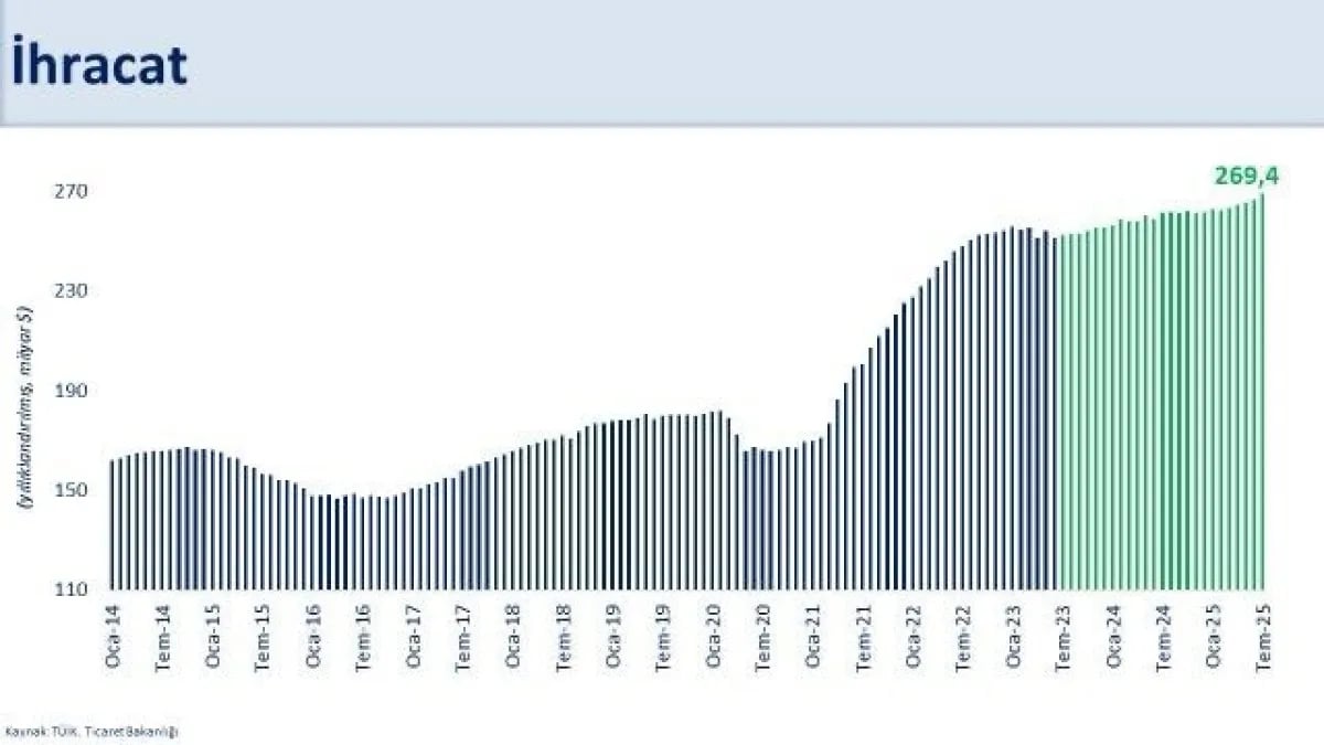 - Temmuz ayında ihracat yıllık bazda yüzde 11 artışla 25 milyar dolara ulaştı.