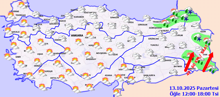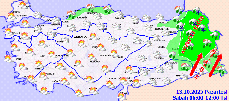 Meteoroloji ile 13-14 Ekim Meteoroloji hava durumu raporu ve kar uyarısı verilen iller şöyle;