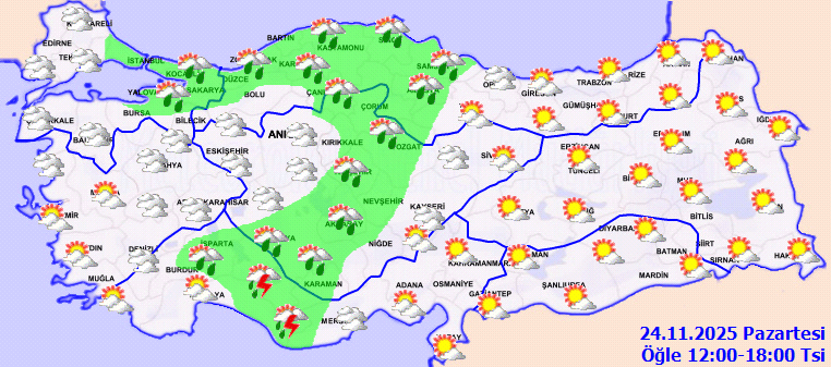 24 Kasım hava durumu uyarıları ve tüm detaylar şöyle;