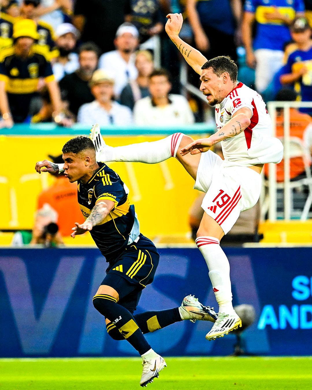 ABD'de düzenlenen FIFA Kulüpler Dünya Kupası C Grubu'nda, milli futbolcular Kerem Aktürkoğlu ve Orkun Kökçü'nün de formasını giydiği Portekiz temsilcisi Benfica, Arjantin ekibi Boca Juniors ile karşılaştı. Karşılaşma tam 3 kırmızı karta sahne olurken, takımlar sahadan 2-2 beraberlikle ayrıldı. Boca Juniors, 21. dakikada Merentiel ve 27. dakikada Battaglia'nın golleriyle 2-0 öne geçerek avantaj yakaladı. Ancak ilk yarının son anlarında Herrera'nın kırmızı kart görmesiyle 10 kişi kalan Arjantin ekibi, 45+3'te Angel Di Maria'nın golüne engel olamadı ve ilk yarıyı tek farklı önde kapattı.