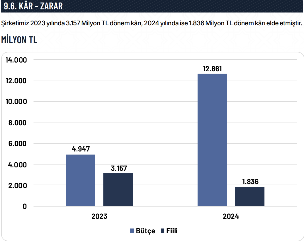 Vergi Usul Kanunu (VUK) esasına göre hazırlanan mali tablolara göre MKE A.Ş., 2024 yılını 1,836 Milyar TL dönem kârı ile kapattı. Şirketin öz kaynakları ise 29,992 Milyar TL olarak gerçekleşti.