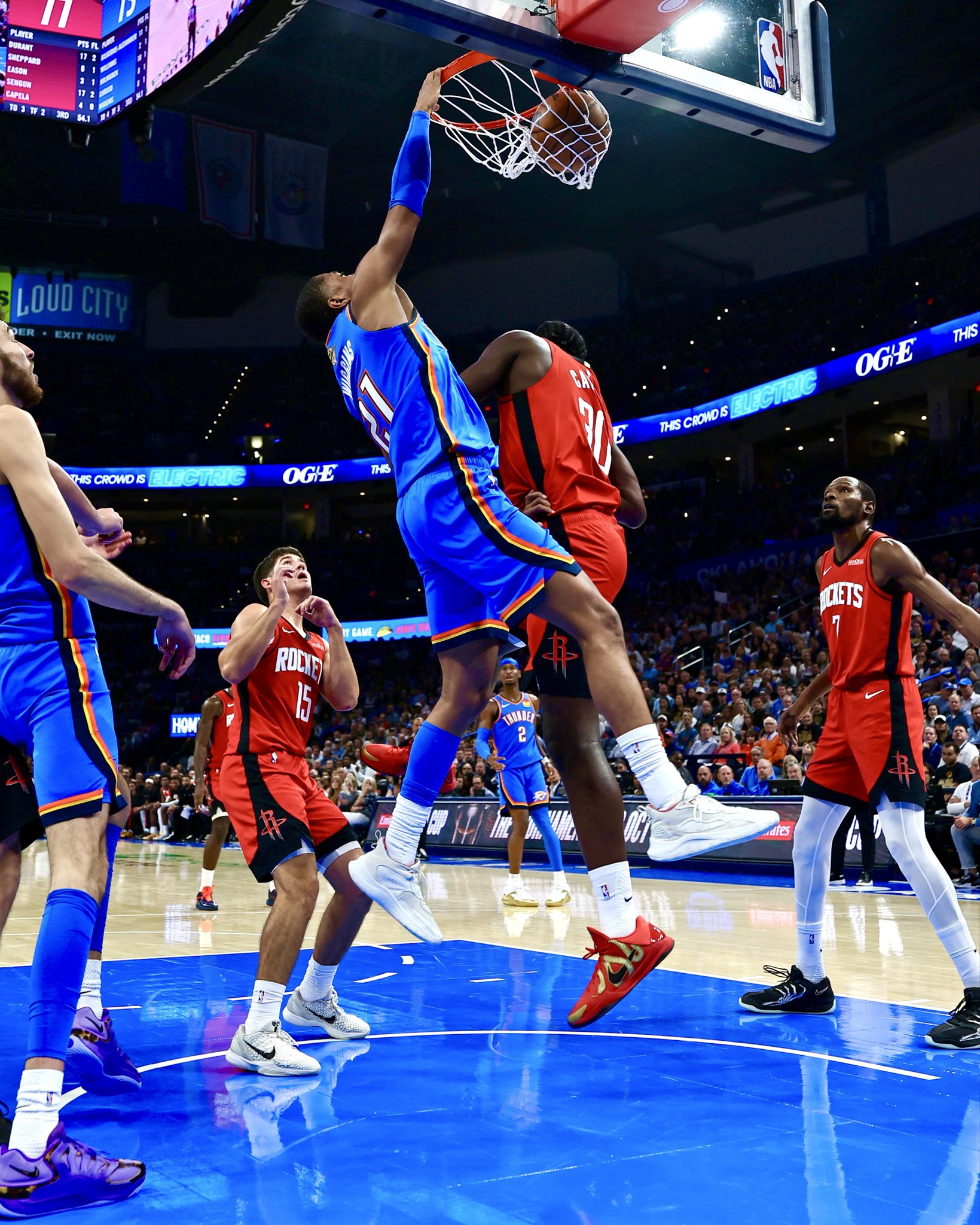 - Son şampiyon Oklahoma City Thunder, zorlu mücadelede Houston Rockets'ı iki uzatma sonunda 125-124 mağlup etti.