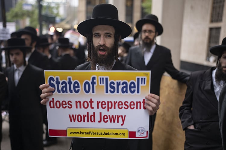 “İsrail, Yahudiliğe karşı” adlı internet sitesi üzerinden organize edilen eylem, Manhattan’daki İsrail Başkonsolosluğu binasının karşısında gerçekleşti