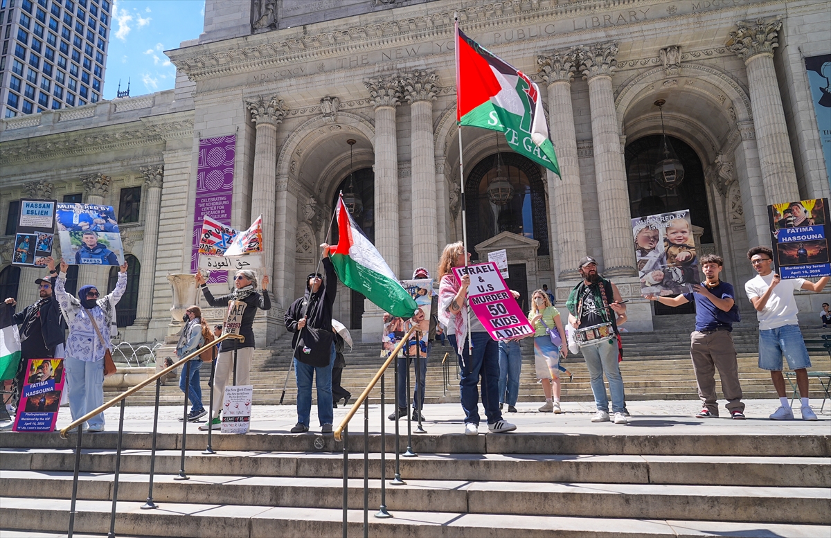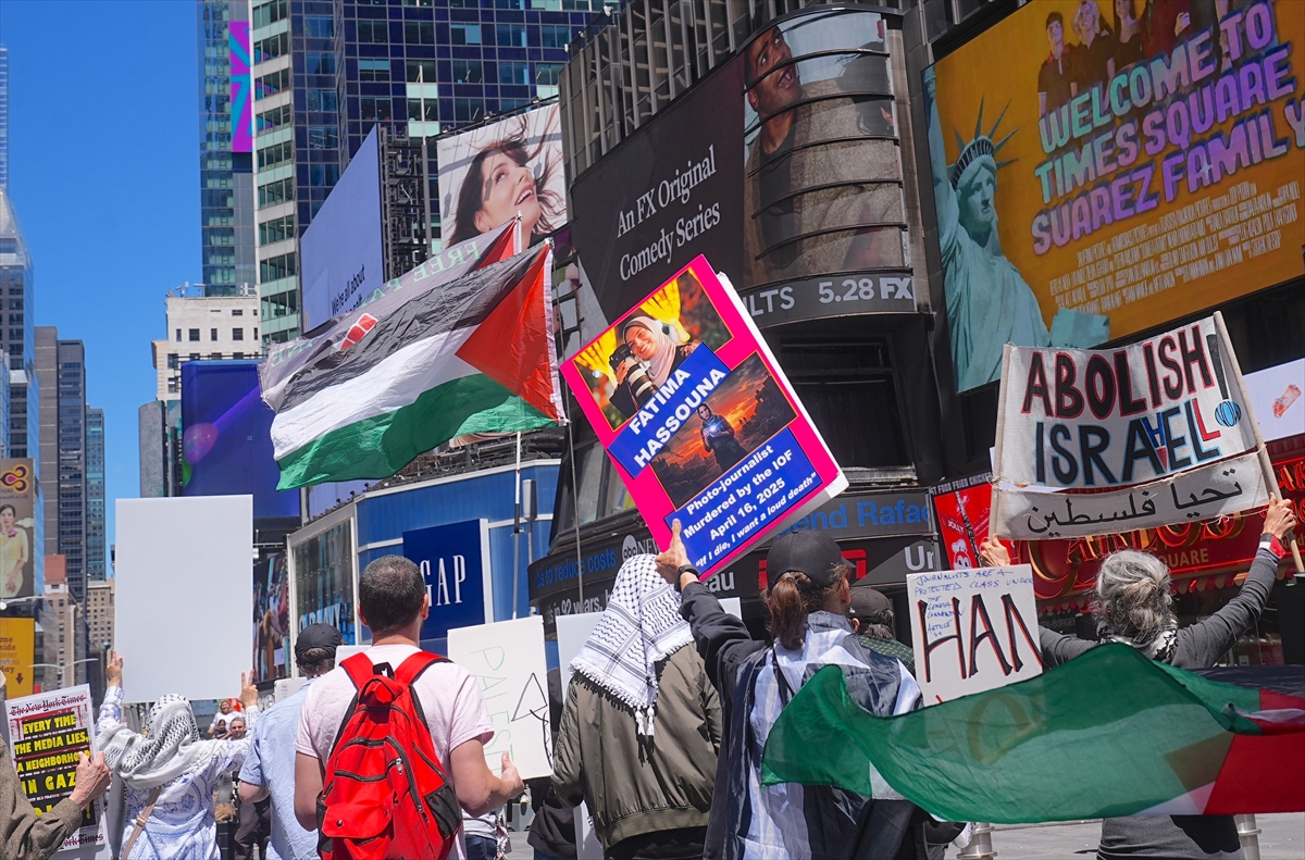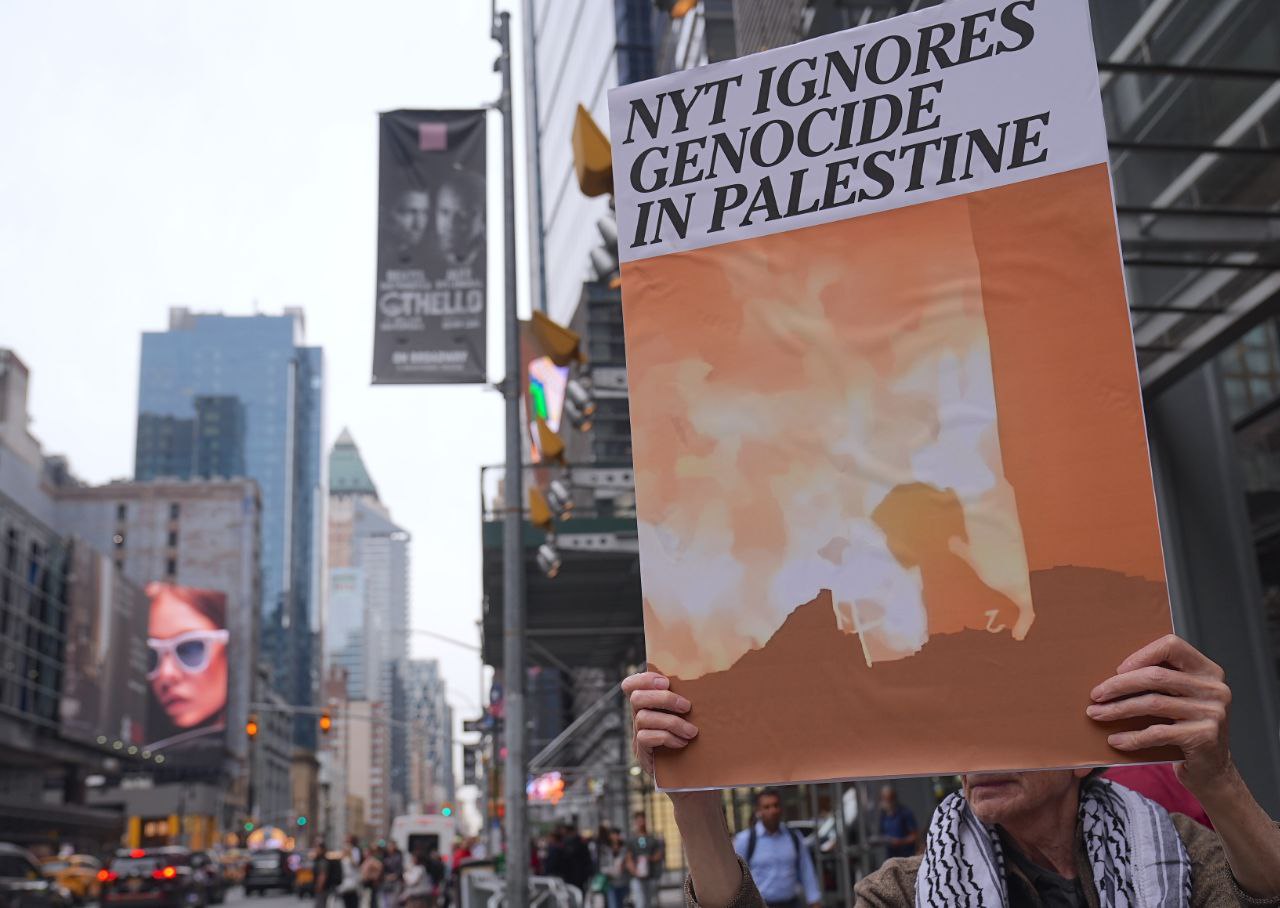 New York Times gazetesinin önünde toplanan insan hakları aktivistleri, gazetenin İsrail yanlısı politikalarını protesto ederek Gazze için ateşkes çağrısı yaptı.