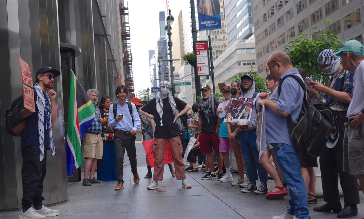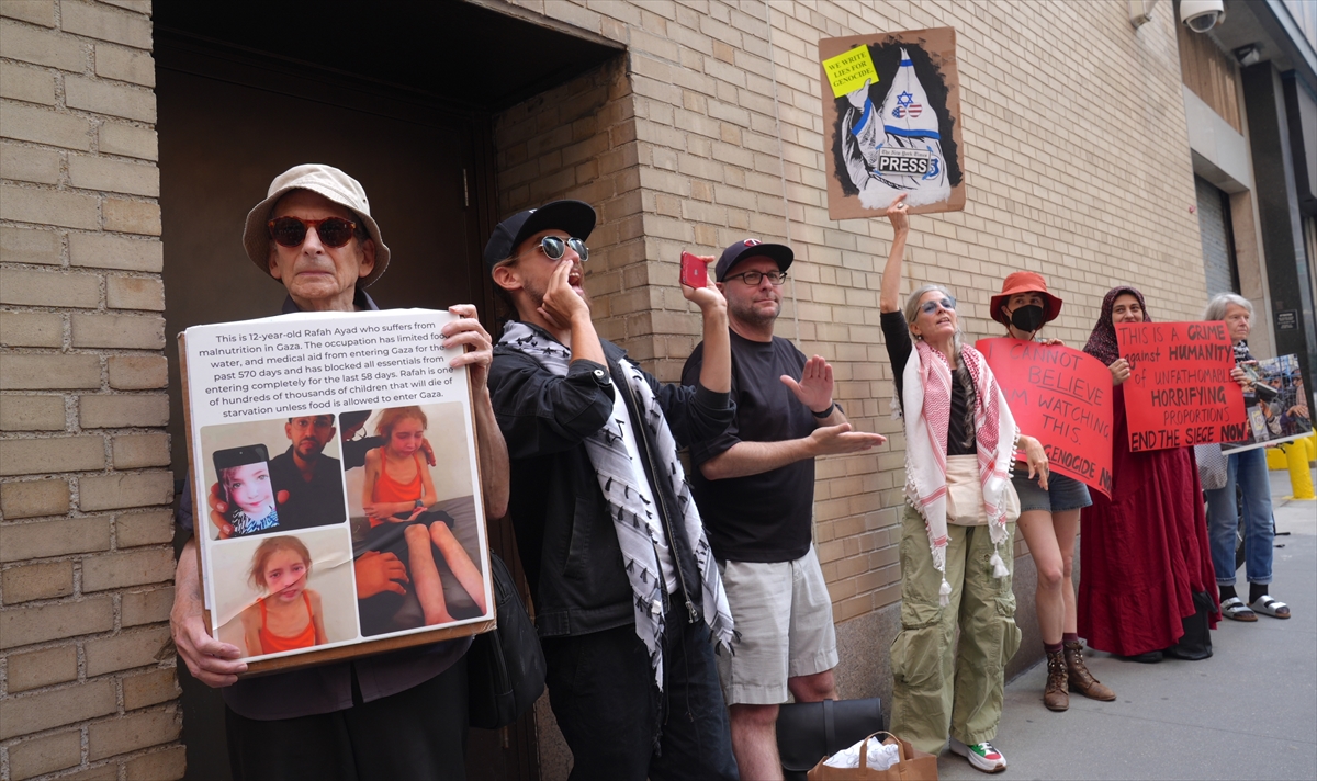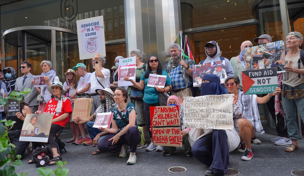 ABD'nin New York kentinde, Filistin destekçisi bir grup, Mısır ve Avrupa Birliği'nin BM Daimi Temsilcilikleri önünde “Gazze’de Açlığa Son. İnsani Yardım Bekleyemez” çağrısıyla protesto düzenledi.