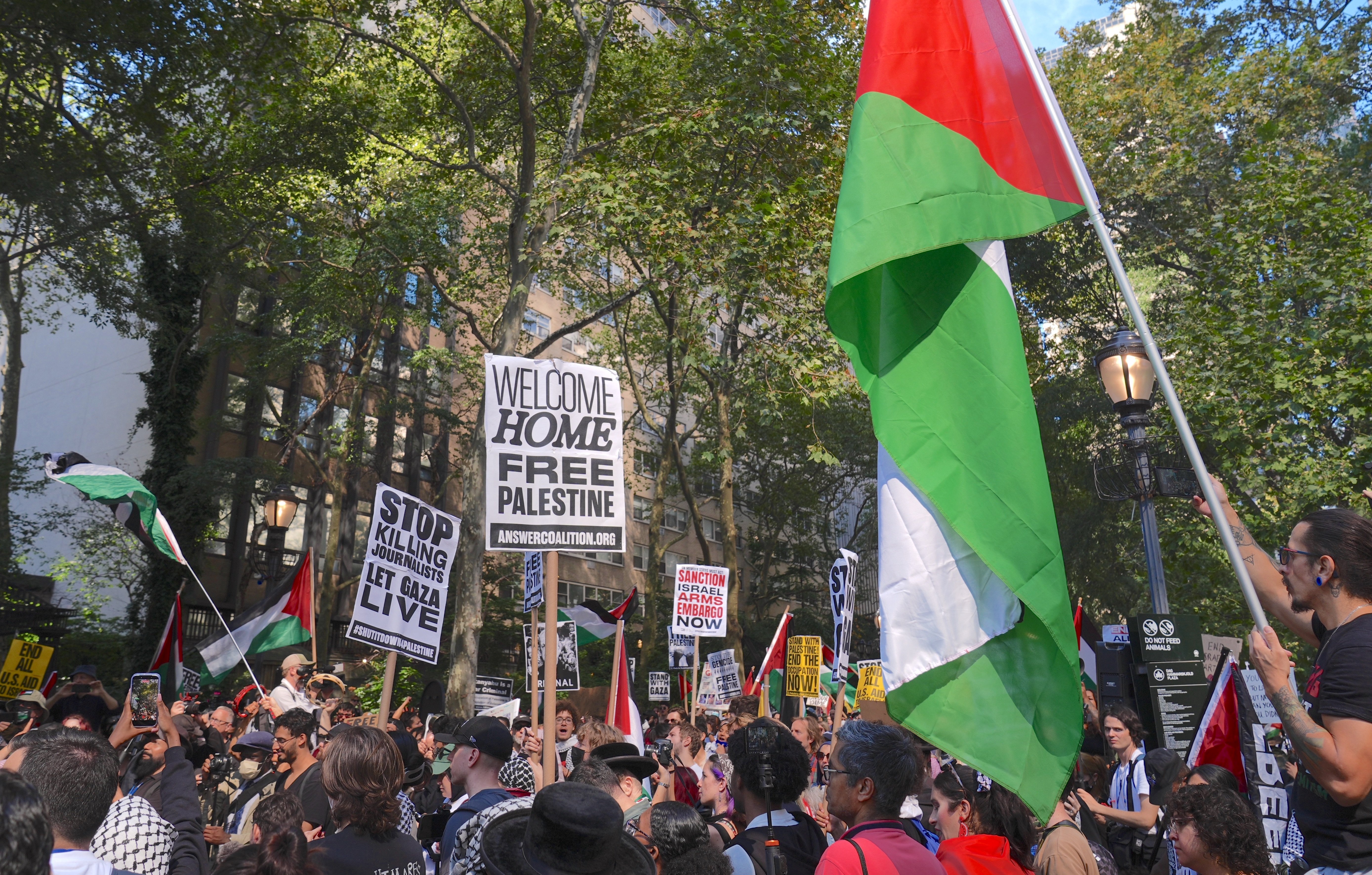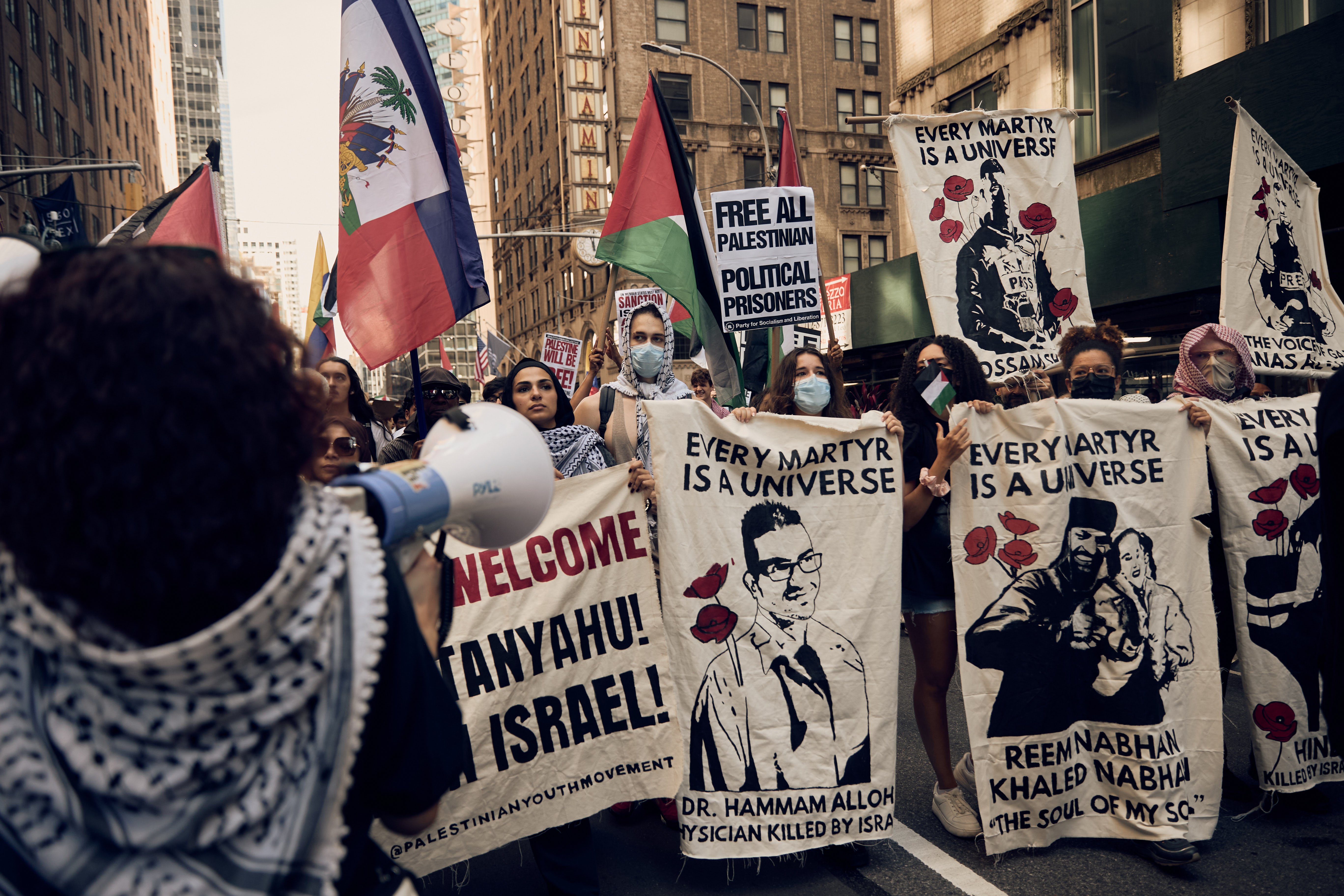 ABD’nin New York kentinde binlerce Filistin destekçisi, BM 80. Genel Kurulu için ABD’ye gelen İsrail Başbakanı Binyamin Netanyahu’yu protesto etti.