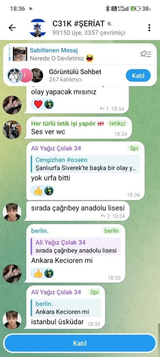 - Saldırganların da içerisinde bulunduğu iddia edilen Telegram grubunda aktif katılımcı sayısının son derece yüksek olması dikkat çekti.