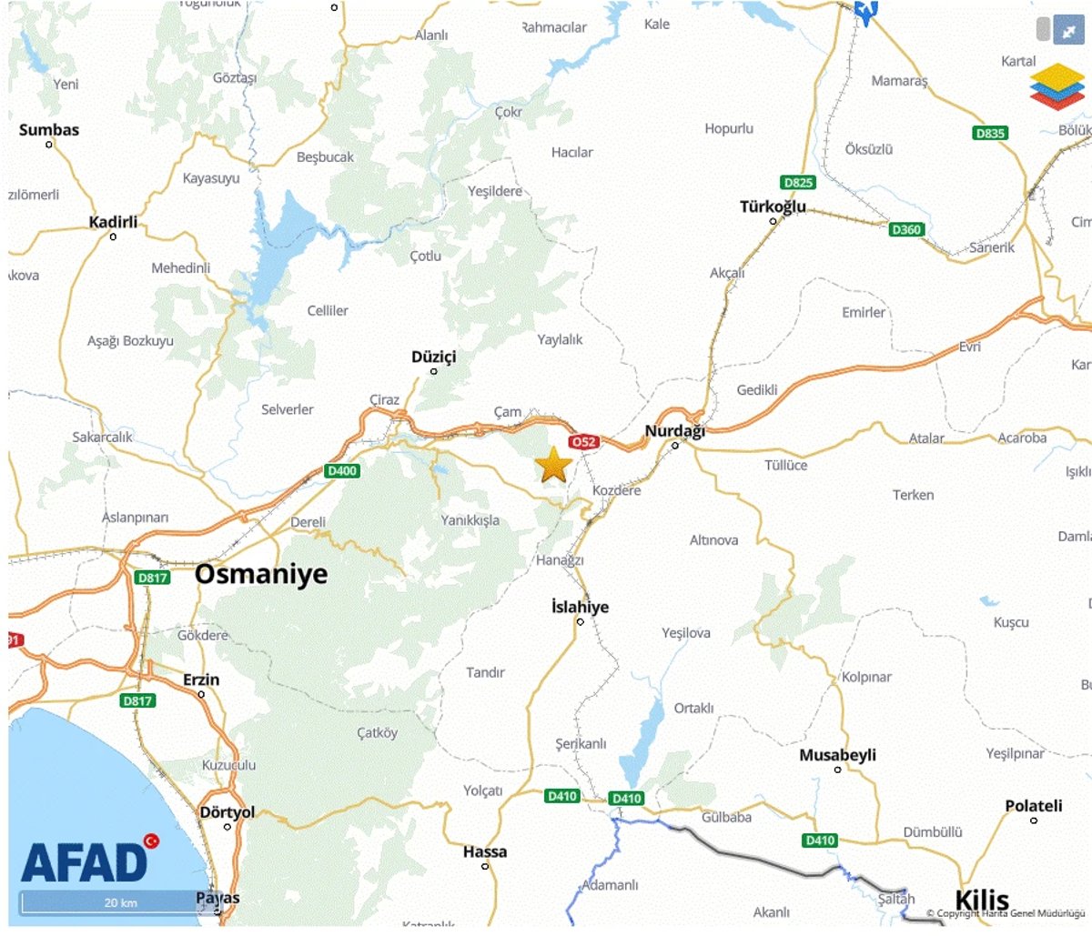 OSMANİYE DEPREM MERKEZ ÜSSÜ HARİTASI