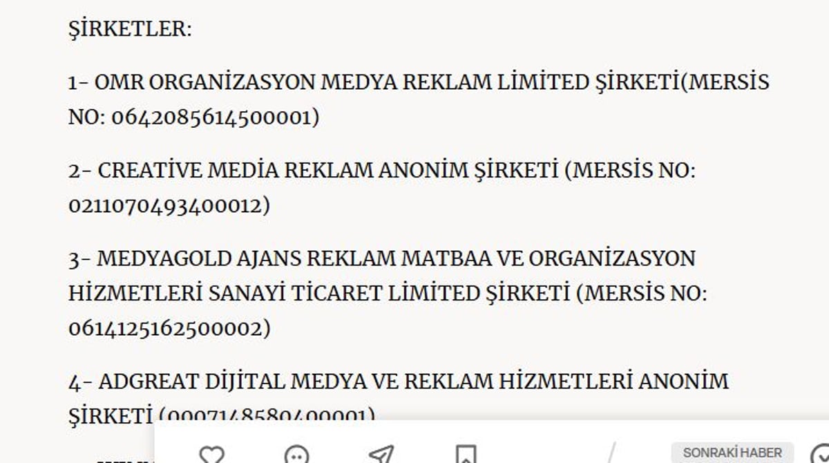- Soruşturma kapsamında 20 şirket incelemeye alındı, ilk sırada OMR Organizasyon yer aldı.