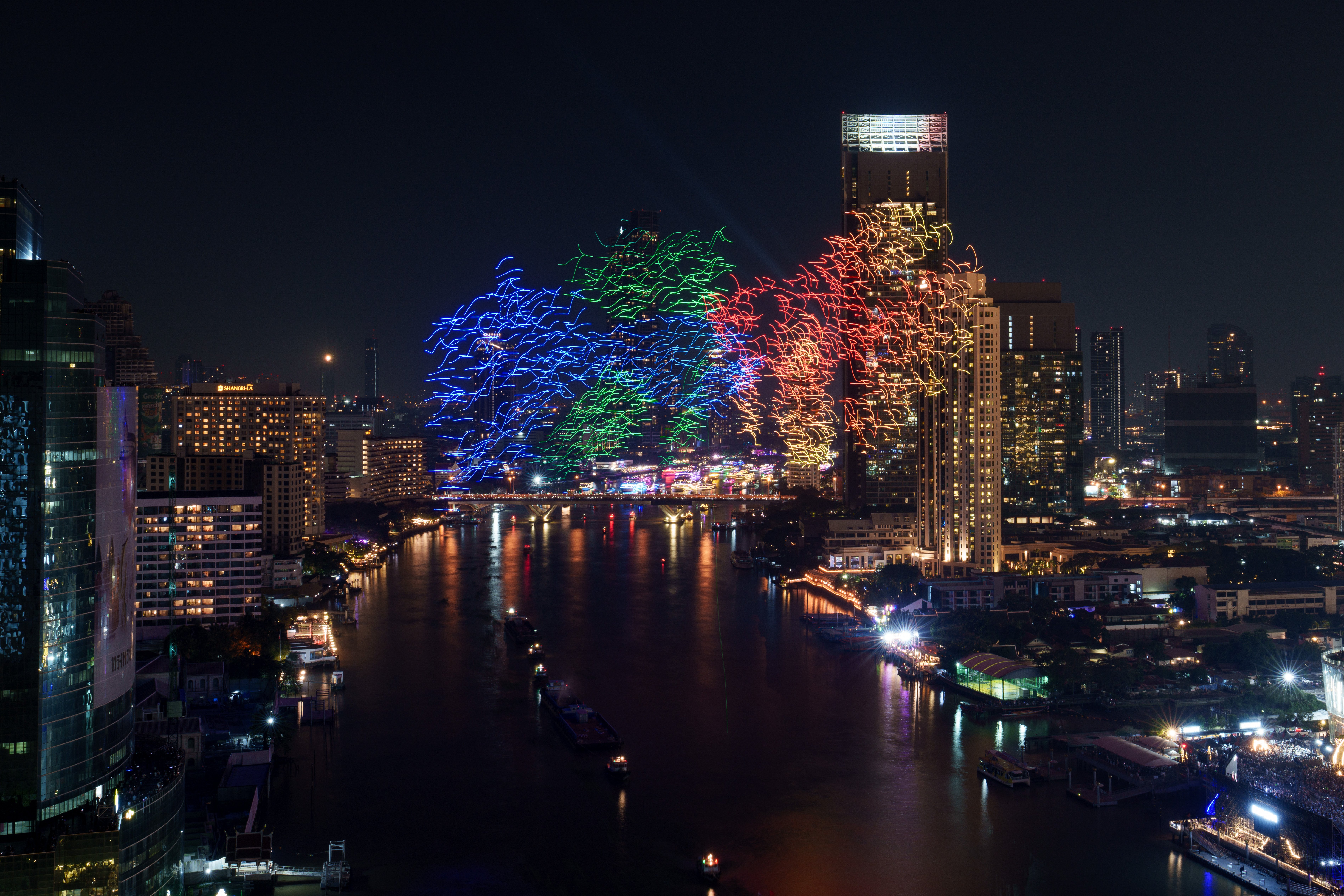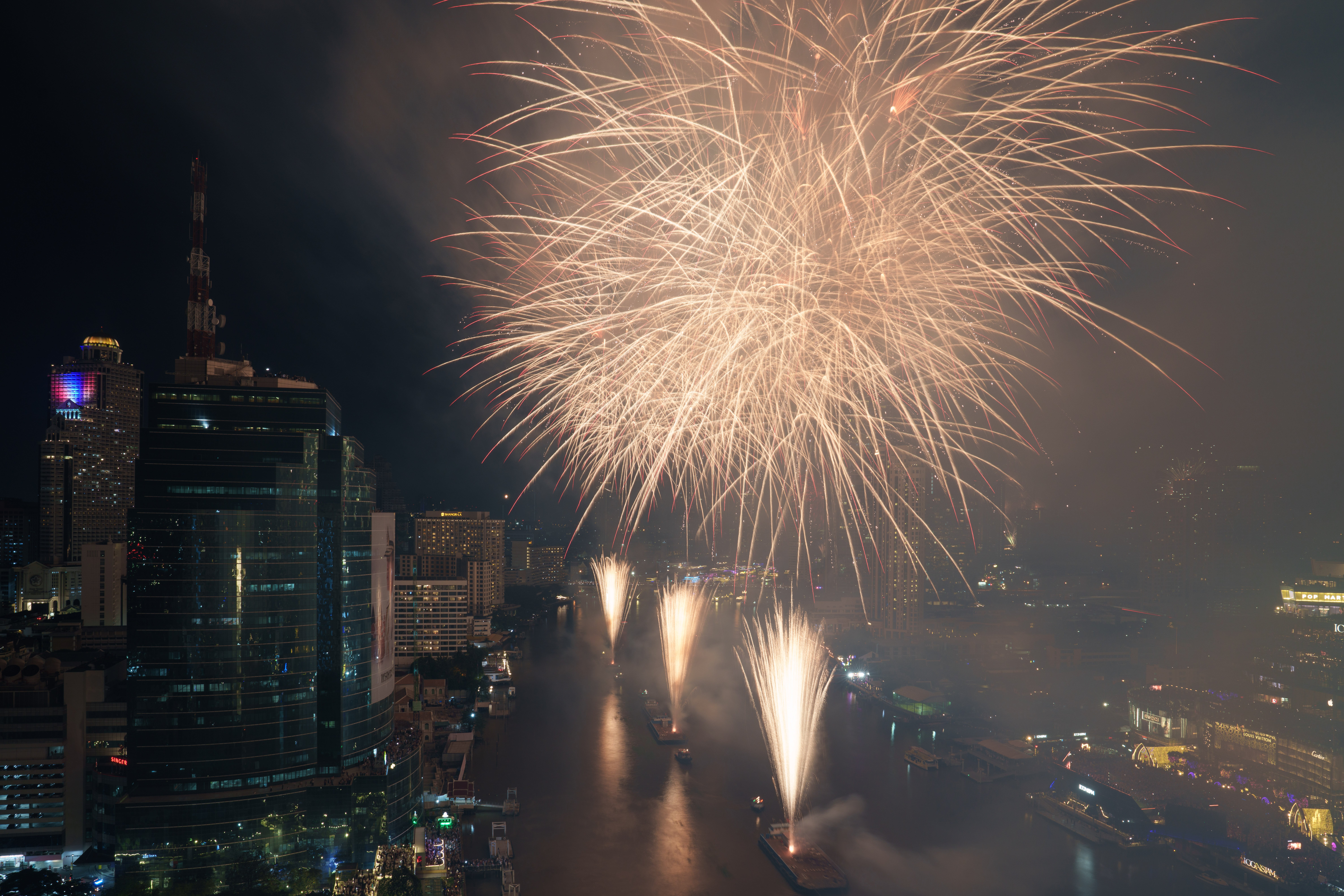 Tayland'ın başkenti Bangkok'ta 2026 yılı, Chao Phraya Nehri boyunca düzenlenen görkemli ışık ve havai fişek gösterileriyle kutlandı.