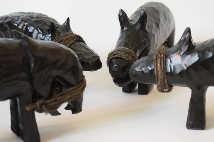 Vahap Avşar, “Uyuyan Dev” serisiyle aynalarla kaplı bir oda tasarlıyor. Ayrıca, Malatya depreminde yıkılan evlerden toplanan buluntu demirlerle yaptığı “Infestation” adlı domuz heykellerinde kırılganlık ve direnç arasındaki gerilimi görünür kılıyor. Heykellere yerleştirilen renkli cam nesneler, enkazın izlerini izleyiciyle buluşturuyor.