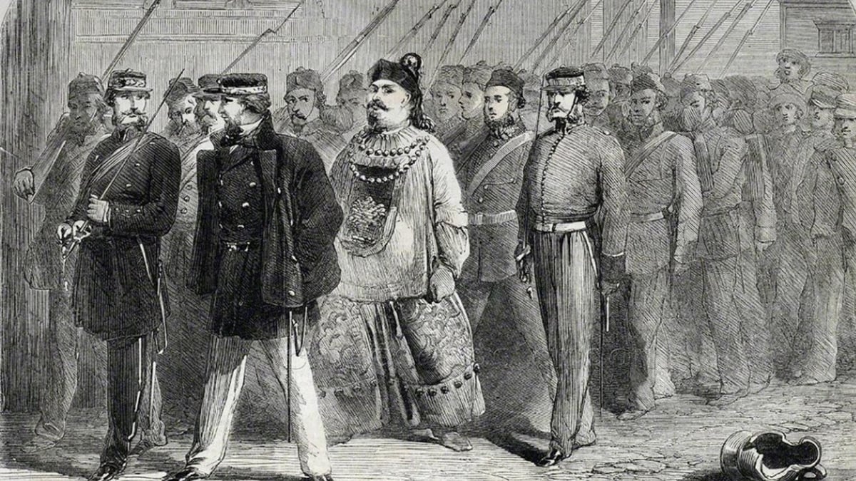 1842 yılında Yangtze Nehri'nde demirlemiş bir İngiliz savaş gemisi olan HMS Cornwallis'te zorla imzalanan Nanking Antlaşması, Çinlileri Hong Kong topraklarını İngiliz sömürgecilere devretmeye, onlara tazminat ödemeye ve “adil ve makul” bir gümrük tarifesi kabul etmeye mecbur kıldı. İngiliz tüccarlar, istedikleri kişiyle beş “antlaşma limanında” ticaret yapma yetkisine sahip oldular.