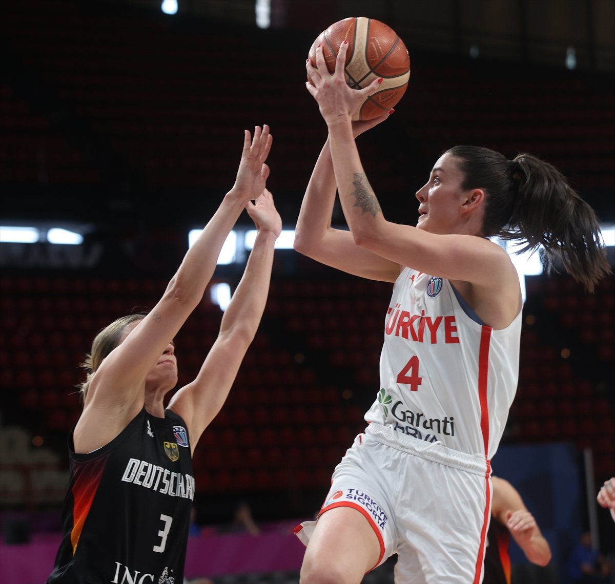Üçüncü çeyreğe 7-0'lık seriyle başlayan milliler, periyodun ortalarında üst üste gelen üç sayılık basketlerle farkı 9 sayıya kadar indirse de (48-57), Almanya oyunun kontrolünü tekrar ele alarak final periyoduna 73-52 önde girdi. Son periyotta rakibinin maça ortak olmasına izin vermeyen Almanya, mücadeleden 20 sayı farkla 93-73 galip ayrıldı. Almanya'da Buhner 19 sayı, 7 asist ve 5 ribauntla galibiyete önemli katkı sağlarken, milli takımda Tilbe Şenyürek'in 15 sayı, 10 ribauntluk "double-double" performansı mağlubiyeti engelleyemedi. Maçı Letonya'dan Andris Aunkrogers, Polonya'dan Paulina Karolina Gajdosz ve Dariusz Zapolski hakem üçlüsü yönetti. Türkiye Basketbol Federasyonu Başkanı Hidayet Türkoğlu ve TBF yönetim kurulu üyeleri de karşılaşmayı salondan takip etti.