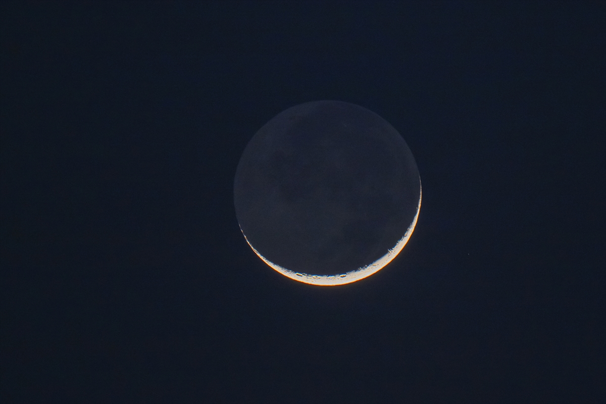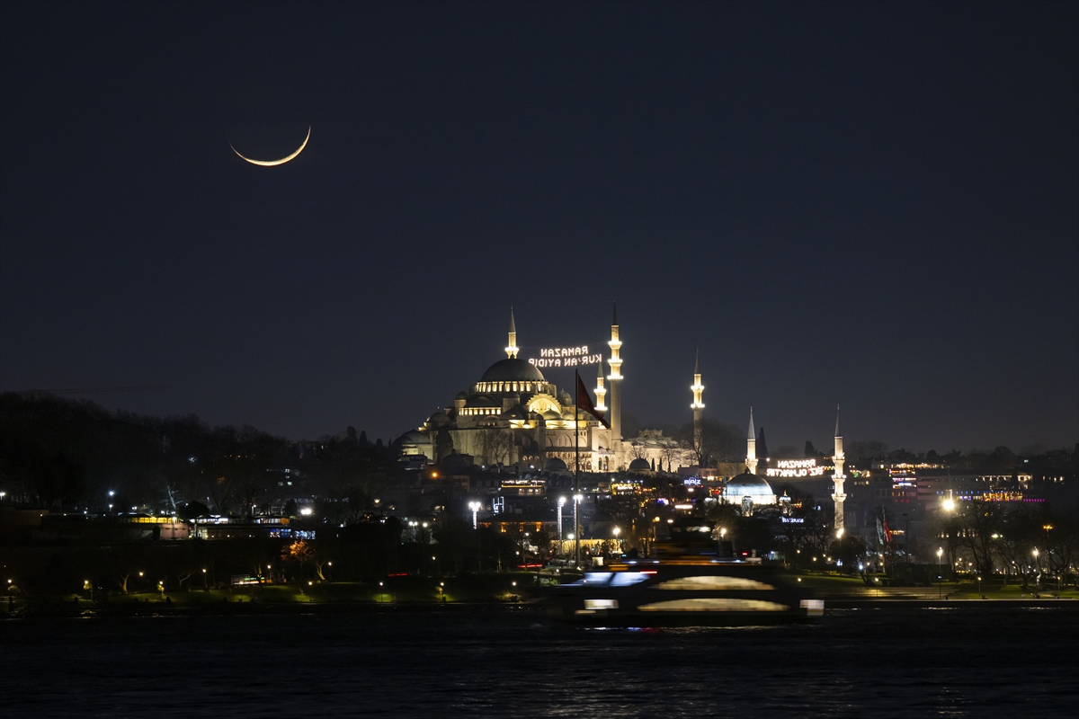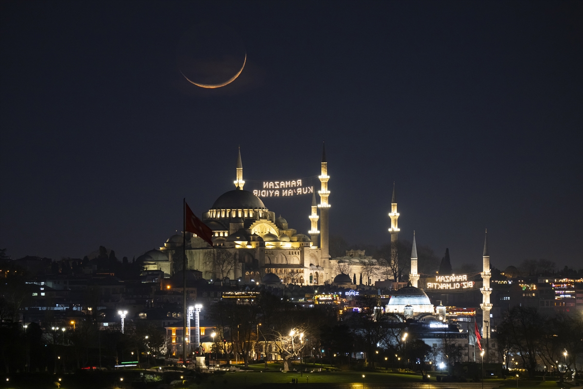 On bir ayın sultanını müjdeleyen Ramazan hilali, Süleymaniye Camii ile birlikte görüntülendi.