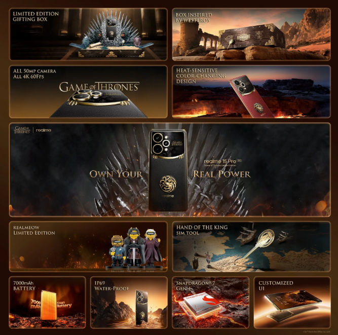 - Realme 15 Pro'nun HBO ile iş birliği içinde geliştirilen Game of Thrones temalı özel bir versiyonu duyuruldu.