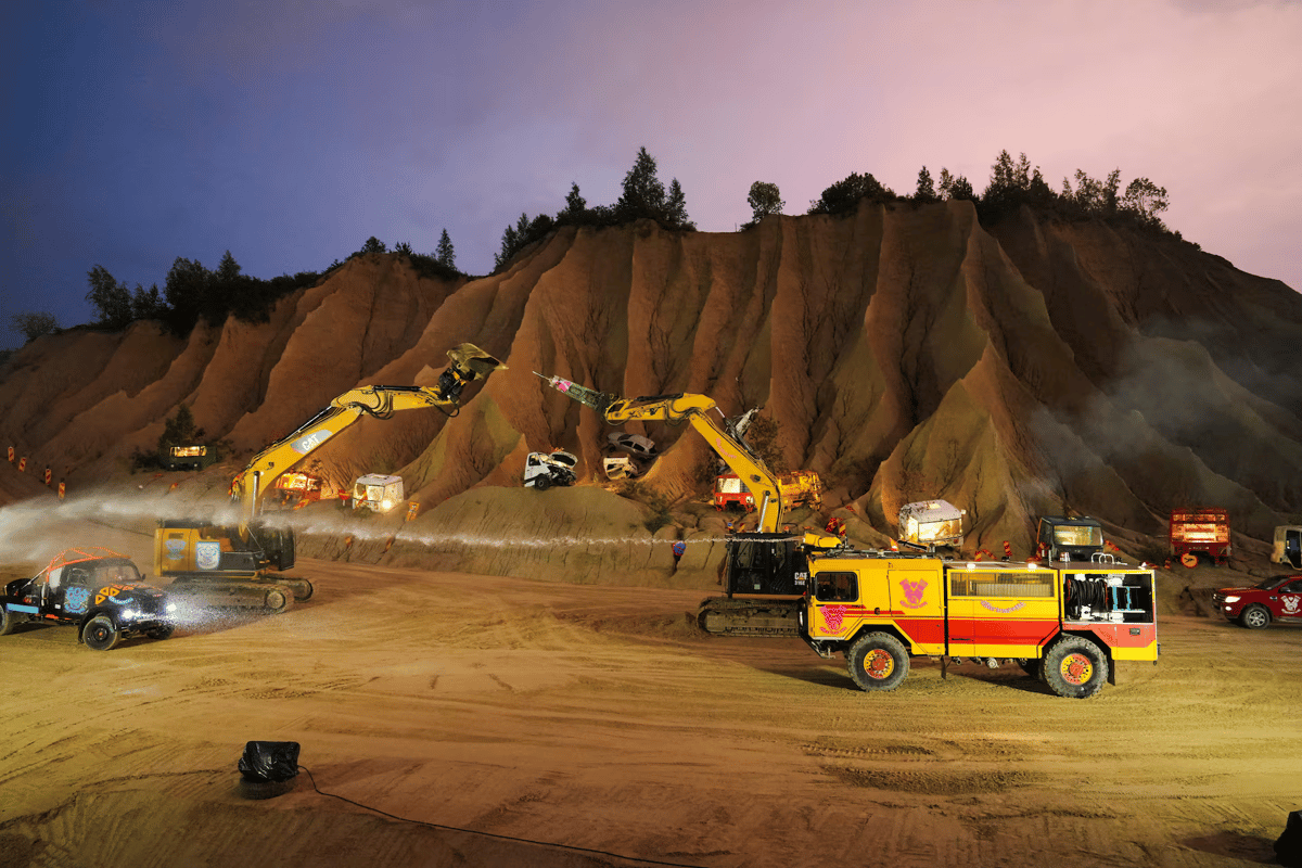Tybalt ile Mercutio arasındaki ikonik düello sahnesi, ekskavatörlerin mekanik kollarıyla canlandırılıyor. Sahne, bir aracın uçurumdan atılmasıyla dramatik bir zirveye ulaşıyor.