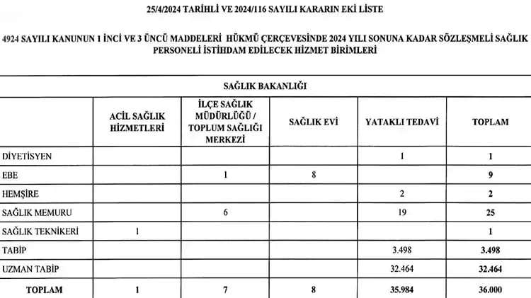 Sağlık Bakanlığı 36 bin personel alımı branş dağılımı