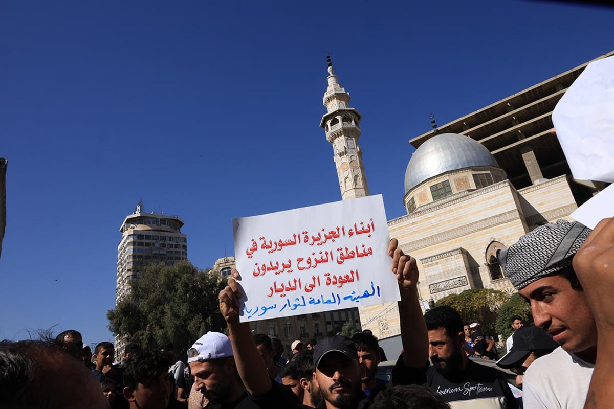 Protestocular, Suriye Cumhurbaşkanı Ahmed Şara’ya seslenerek, ülkenin doğusundaki SDG varlığının sona erdirilmesini talep etti.