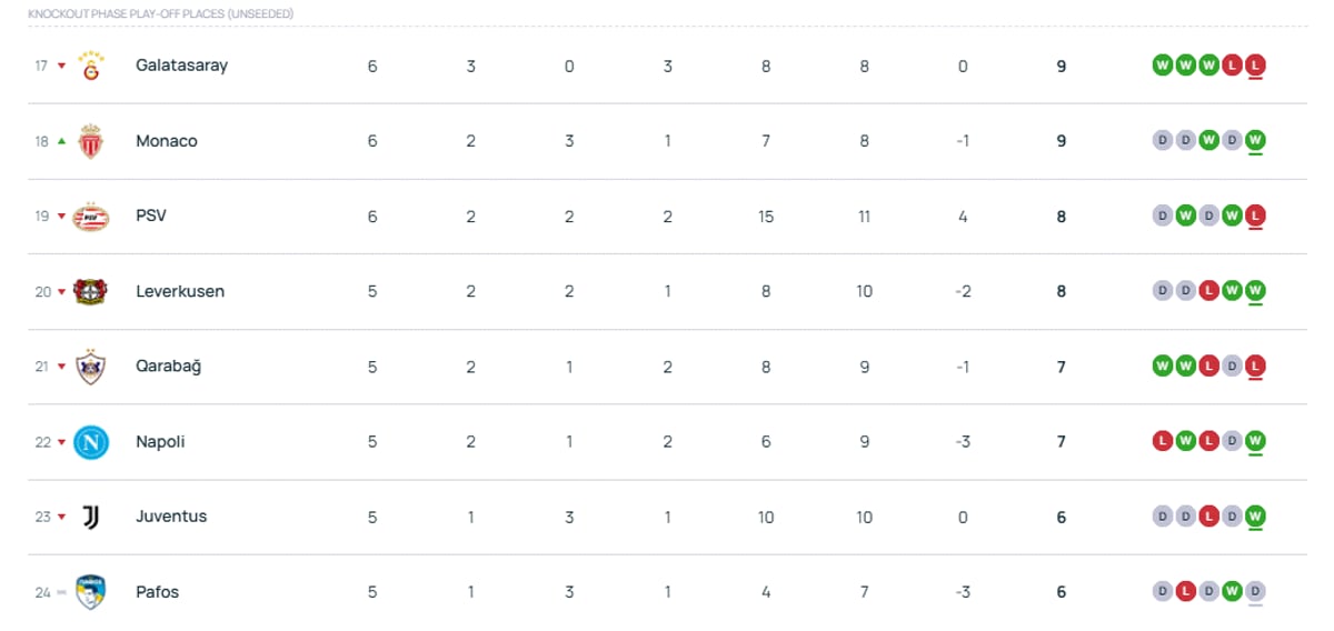 Şampiyonlar Ligi puan durumu tablosu | Şampiyonlar Ligi'nde Galatasaray kaçıncı sırada, kaç puanı var?