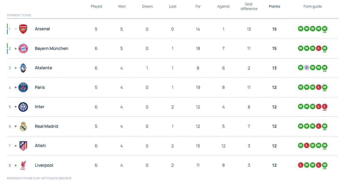 9 Aralık Şampiyonlar Ligi puan durumu listesi ve tüm detaylar şöyle;