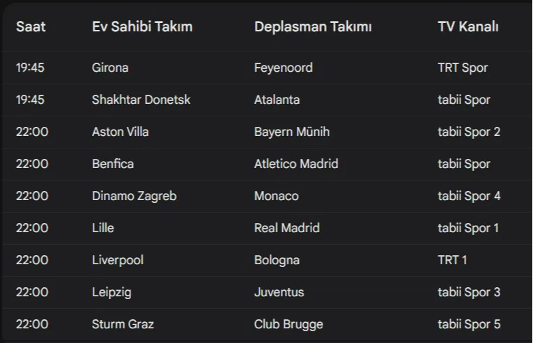 Şampiyonlar Ligi'nde bugün maç var mı?