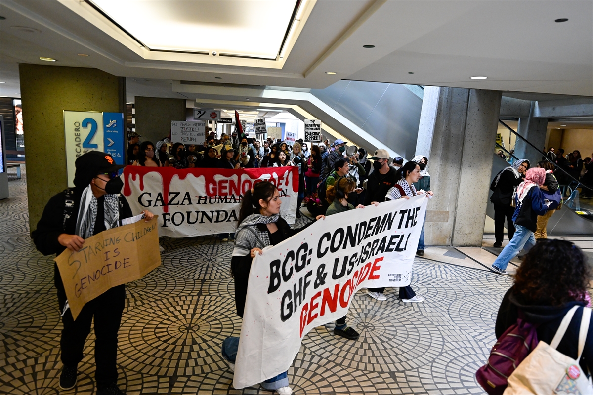 ABD'nin San Francisco kentinde toplanan yüzlerce eylemci, Gazze'deki insani krizi ve Boston Consultancy Group'un İsrail'le ilişkilerini protesto etti.