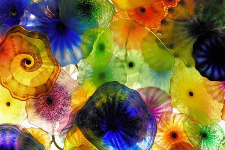 Sanatçı Dale Chihuly , Las Vegas'taki Bellagio Oteli'nin renkli tavanı olan Fiori di Como'yu, 2.000'den fazla el yapımı cam çiçekle tasarladı.