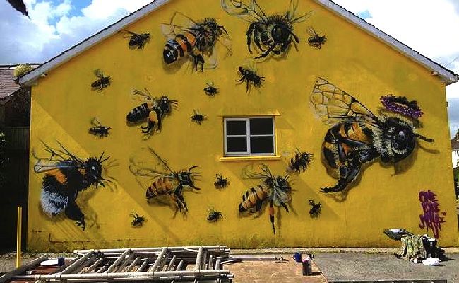 Londra merkezli sokak sanatçısı Louis Masai Michel, arıların korunması gerektiğini vurgulamak için şehir duvarlarını etkileyici duvar resimleriyle süslüyor.