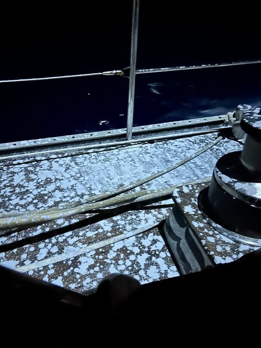 Hiçbir uyarı yapmadılar, hiçbir bildirim gelmedi. Tamamen uluslararası sulardaydık ve aniden drone'lar belirdi, üzerimize bilinmeyen beyaz bir madde attılar.
